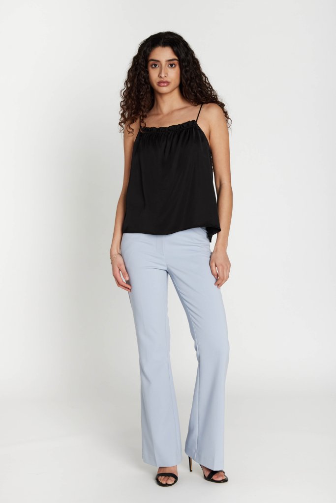 SocrateaBBJannet buxur eru glæsilegar buxur með beinum sniði og tímalausri svipbrigði. Fjölhæfur kostur fyrir dag- og kvöldnotkun. Stíliseraðu með samsvarandi jakka fyrir nútímalegan föt, eða með silkiblússu fyrir mýkri útlit. Hentugt bæði fyrir vinnu og kvöldviðburði. Með rennilás og hnappalokun