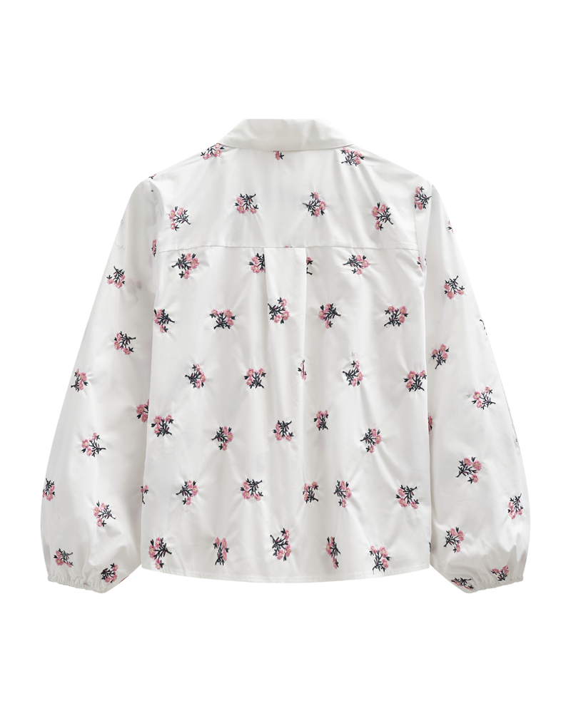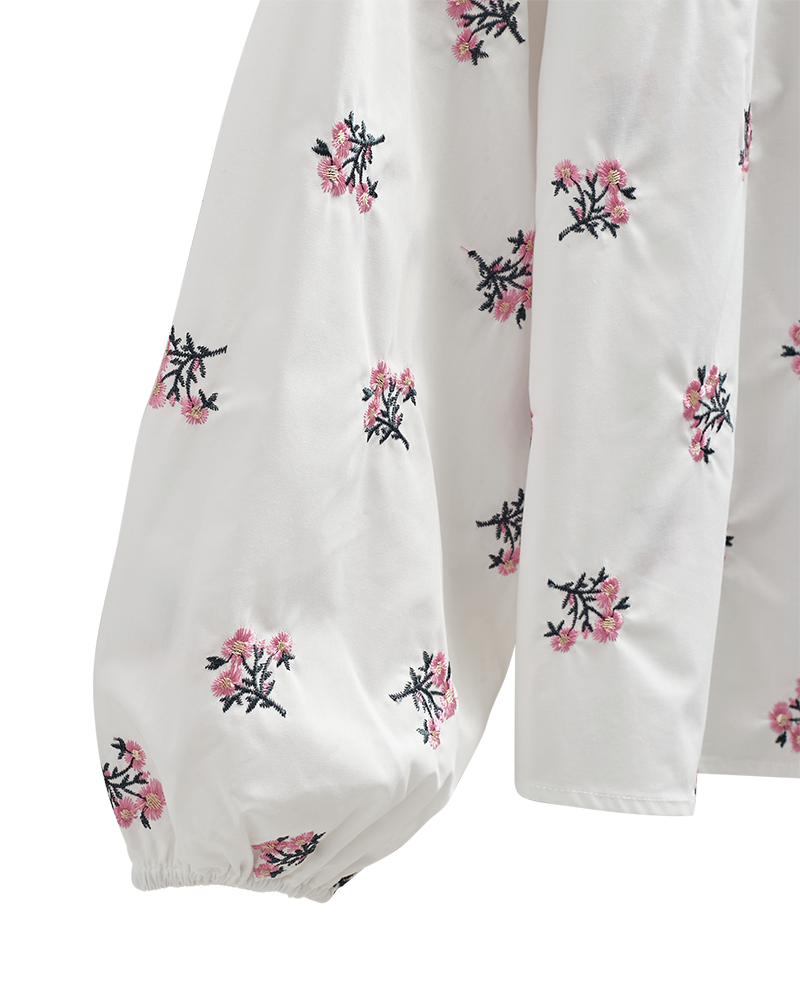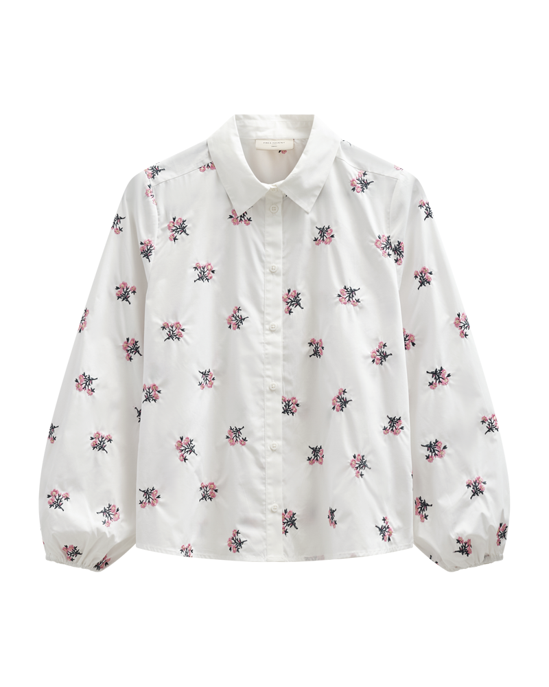 Blússa frá Freequent úr léttu efni með allsherjuðum útsaumuðum blómum fyrir fallegt útlit. Auk þess hefur blússan langar ermar með teygjuböndum, hnappafestingu að framan, rauf á hliðum og laust snið.