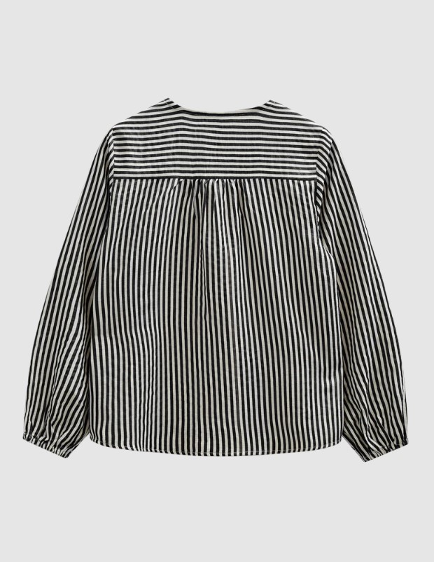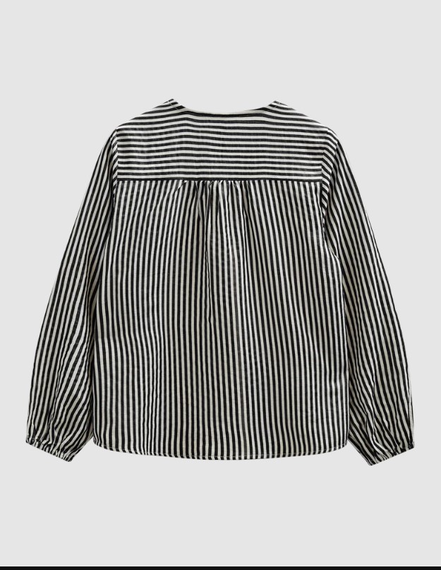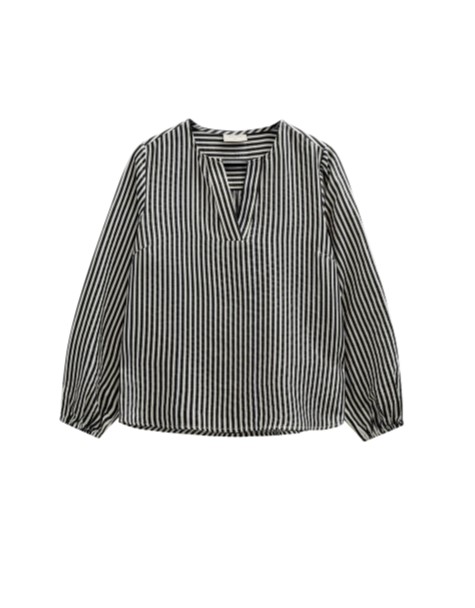 Blússa frá Freequent úr léttu efni með röndóttu mynstri. Blússan hefur langar blöðruermar með teygjanlegum ermum, V-hálsmál, fínar bakfellingar og glæsilega, lausa passform.