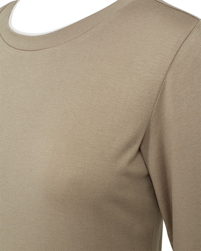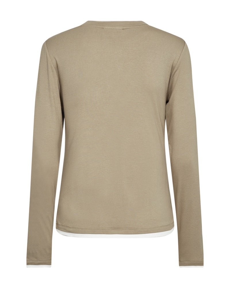 Langermabolur frá Freequent úr mjúku efni með lagskiptum áhrifum. Bolurinn hefur einfaldan skuggamynd með kringlóttum hálsmáli og þröngum sniði.