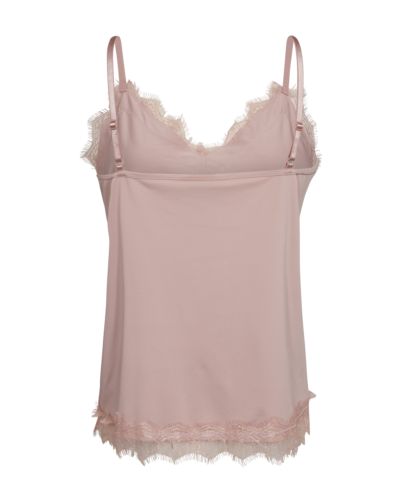 Toppur frá Freequent í léttu efni. Toppurinn hefur einfalt útlit með mjóum, stillanlegum axlarólum, V-hálsmáli, afslappaðri sniði og fíngerðum blúndudetaljum. Smáatriði sem bætir við glæsilegum blæ.