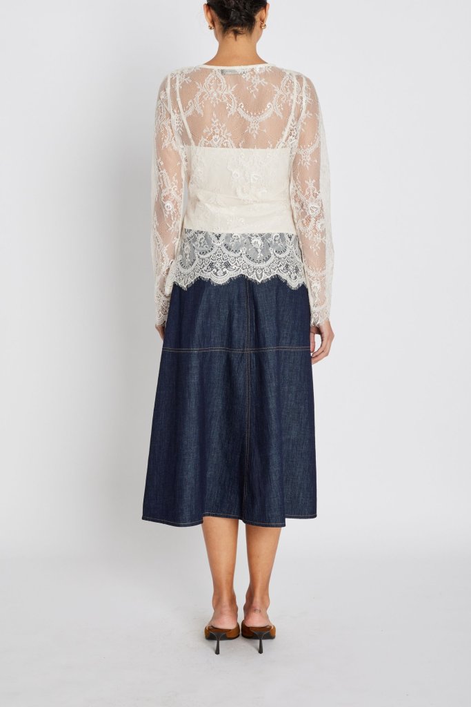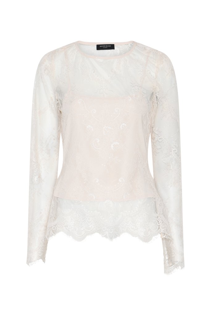 JuaniaBBSynvia blússan er létt og glæsileg með venjulegu sniði og fíngerðum skrautsaumi. Gegnsæja efnið bætir við fágaðri og kvenlegri tjáningu. Stílaðu það með einföldum toppi undir og buxum fyrir daglega notkun, eða með pils og skartgripum fyrir hátíðleg tilefni. Blússa með daufri fágun og fjölhæfni.