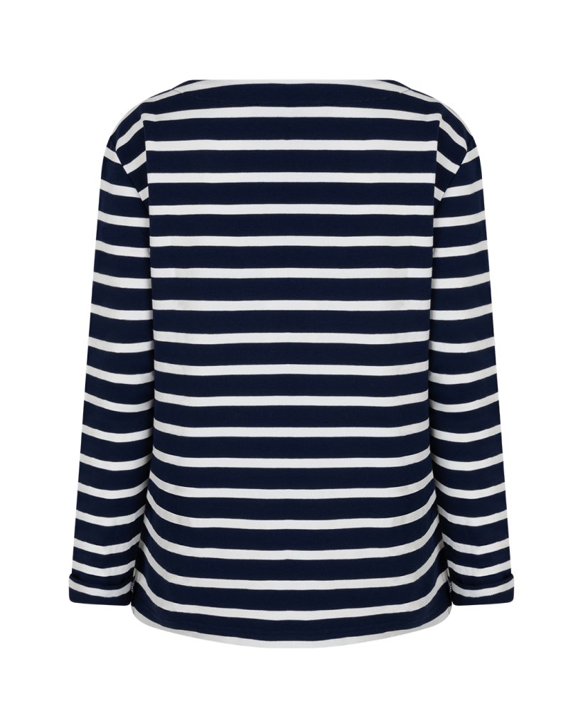 Terry Stripe langermabolurinn er toppur úr bómullarteygju með löngum ermum og láréttum röndum. Toppurinn hefur kringlóttan hálsmál.
