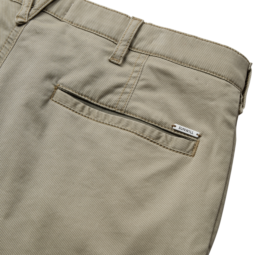 Bómullarbuxur í Modern Fit með léttum teygjanlegum og andstæðum smáatriðum á bakvösunum