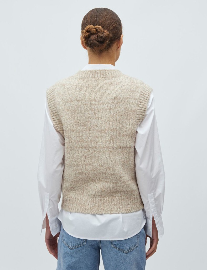Prjónað vesti með V-hálsmáli, afslappað snið, venjuleg lengd