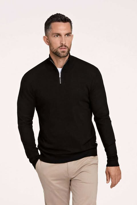 Ecovero half zip L/S Knit-Black
