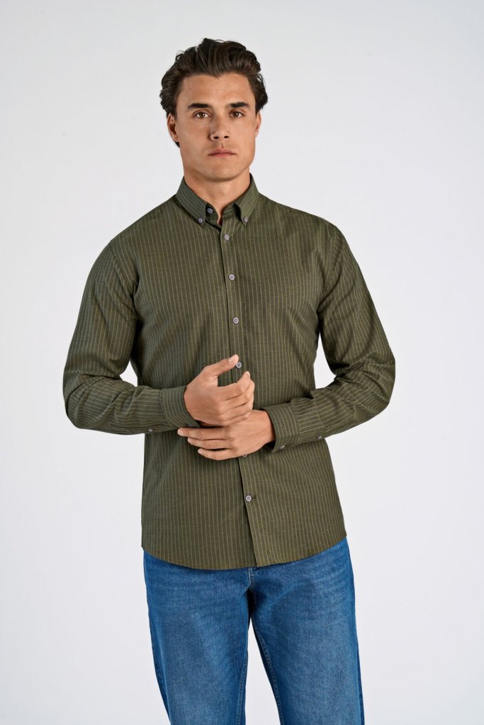 Striped Superflex Oxford L/S Army