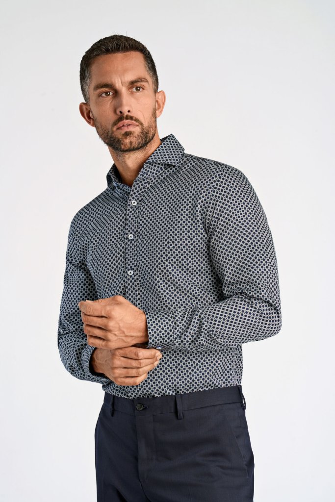 AOP dobby shirt L/S DK Blue